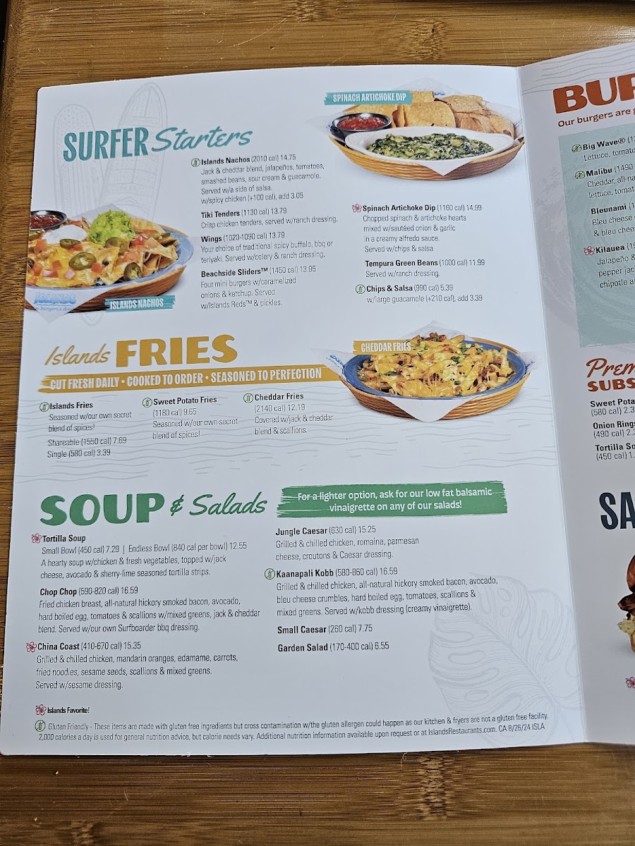 The atmosphere at Islands is inviting, with a relaxed vibe that makes it perfect for family outings. Reviewers have praised the engaging service, like servers telling riddles to entertain kids, enhancing the overall dining experience. However, changes to the menu have sparked some nostalgia, as loyal patrons miss old favorites.